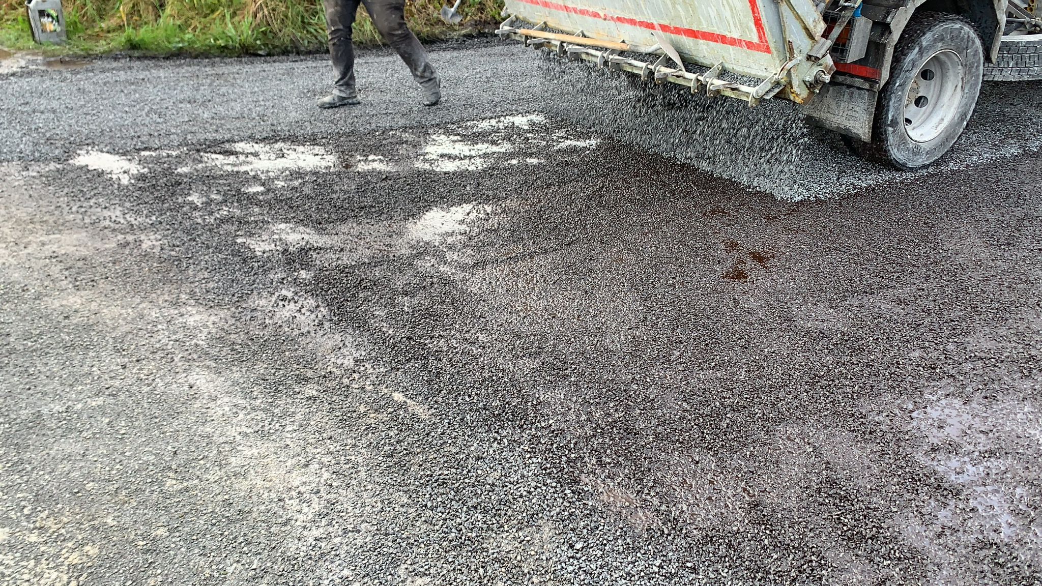 A chip of your choosing will then be applied over the hot tar. This needs to be done whilst the bitumen is still piping hot to ensure it bonds with the chip.